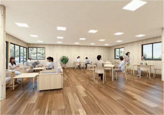 地域住民、居住者の誰もが気軽に利用できる交流施設です。1階には約60㎡(37帖)ほどのホールがあり、会議、イベント、地域活動に誰でも利用できます。2階にはコワーキングスペースと、9室の貸しオフィスを備えて、企業のサテライトオフィスや個人事業のスタートアップなどにも利用できます。